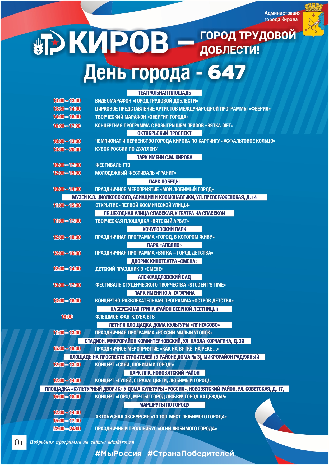 12 июня у кировчан двойное торжество: день России и день города. В этом году жители Кирова отмечают 647-летие родного города. Немного о нашем городе. В 2021 году население непосредственно самого Кирова составило 512 тыс.чел., с учетом всех населенных пунктов, Читать далее …