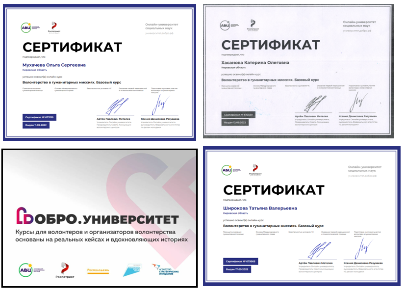 В рамках реализации федерального проекта «Социальная активность» национального проекта «Образование» СПЕЦИАЛИСТЫ НАШЕГО КОМБИНАТА ПРОШЛИ ОБУЧЕНИЕ по образовательной программе «Базовый курс «Волонтерство в гуманитарных миссиях». Обучающие курсы на платформе онлайн-университета социальных наук «ДОБРО. УНИВЕРСИТЕТ» прошли наши педагоги-психологи и методист. Читать далее …