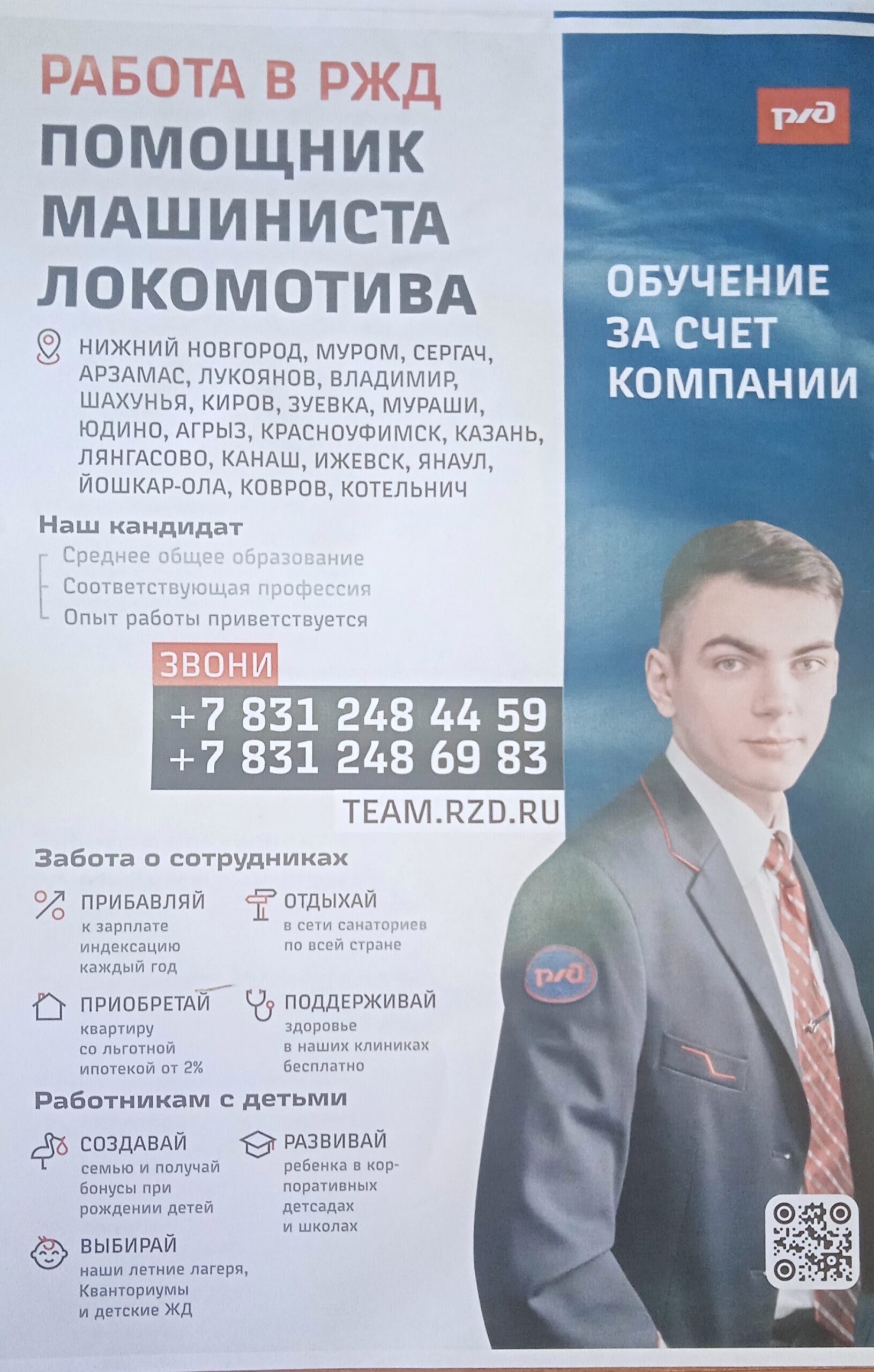 Важная информация от Центра занятости населения города Кирова. У Вас есть возможность пройти обучение по образовательной программе «помощник машиниста». Обучение осуществляется бесплатно для дальнейшего трудоустройства в компанию «Российские железные дороги. Справки по телефонам: 8-831-248-44-59, 8-831-248-69-83. Путеводитель молодого сотрудника — смотреть.