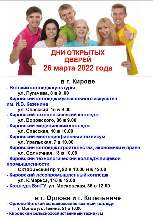 ВЯТСКИЙ ЖЕЛЕЗНОДОРОЖНЫЙ ТЕХНИКУМ приглашает на День открытых дверей» 31 марта в 14.00 по адресу: ул. Комсомольская д. 41а
