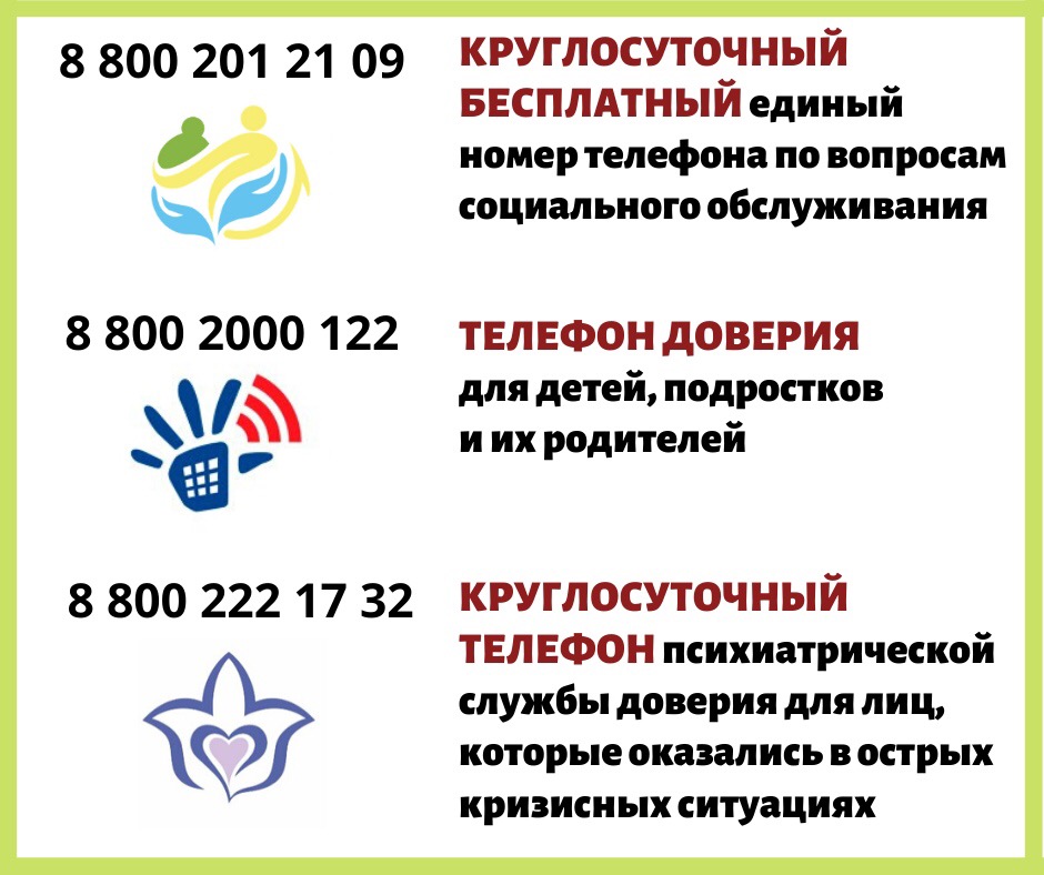 С учётом усиления влияния психологических факторов в межличностных отношениях в периоды самоизоляции, пролонгированных каникул, ряда других ограничений может возникнуть дополнительная необходимость оказания психологической помощи, в том числе экстренной. Данная помощь может быть оказана сотрудниками Детского телефона доверия 8-800-2000-122.