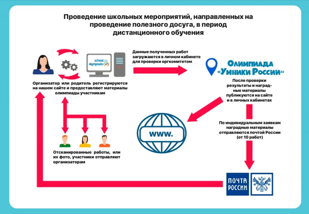 Для того, чтобы принять участие во Всероссийской Олимпиаде школьников «Умники России», школьному организатору, педагогу, учащимся или родителям необходимо: