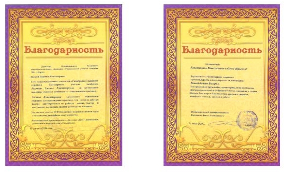 За отличную работу торговая сеть «Самобранка» выразила признательность и благодарность директору МБОУ МУК № 4 и родителям наших учениц.