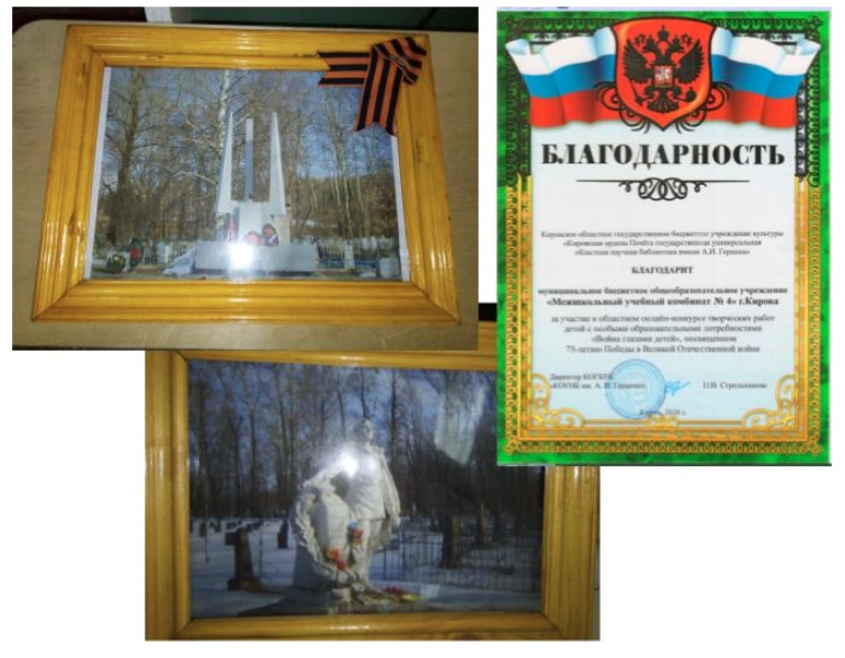 В начале учебного года учащиеся МБОУ МУК № 4 были отмечены благодарностями за участие в областном конкурсе творческих работ детей с ограниченными возможностями «Война глазами детей», посвященного 75-летию Победы в Великой Отечественной войне.