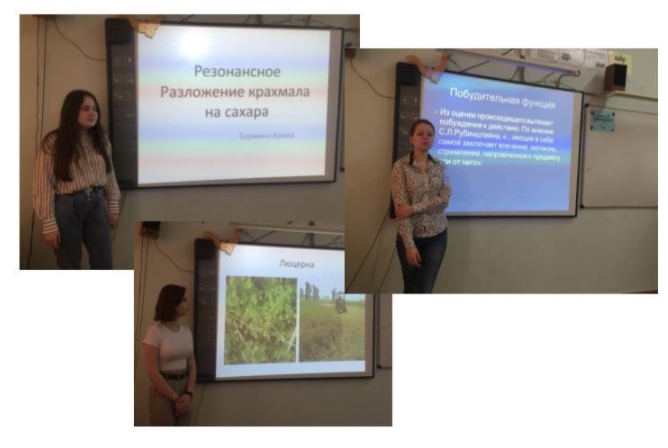 Еще одна интересная тема – «Резонансное разложение крахмала» Барминой Арины, где она представила различные способы разложения крахмала на простые сахара. Воплощение данной технологии в жизнь могло бы спасти тысячи жизней и поднять экономику Кировской области.