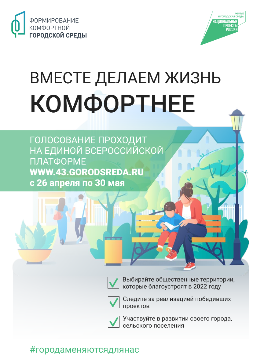 На территории муниципального образования «Город Киров» голосование по отбору общественных территорий, подлежащих благоустройству в 2022 году в рамках реализации муниципальной программы «Формирование современной городской среды муниципального образования «Город Киров» на 2020 – 2024 годы» будет проходить в течение пяти недель – с 26 апреля по 30 мая 2021 года.