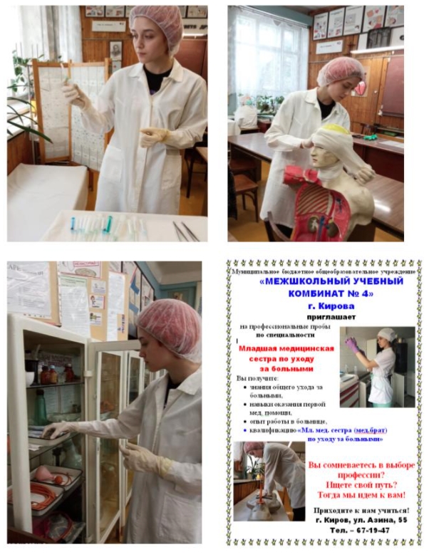 Наши ученики получают знания общего ухода за больными, навыки оказания первой медицинской помощи, учатся делать инъекции, повязки.