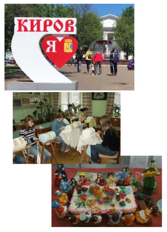 Киров называют торфяным и меховым центром нашей страны. Кроме того, город ассоциируется с народными промыслами ‒ это вятское кружевоплетение, расписная глиняная дымковская игрушка, вятские матрешки, резьба по капакорню, плетение из лозы.