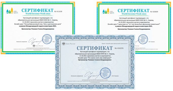 Ученики 7-9 классов МБОУ МУК № 4 с 4 по 15 октября приняли участие в онлайн-уроках финансовой грамотности «Личный финансовый план. Путь к достижению цели», «Что нужно знать про инфляцию», «С деньгами на Ты» или «Зачем быть финансово грамотным».