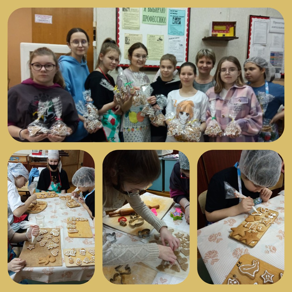 На занятиях объединения кулинарии «Фантазируем и учимся на кухне» на этой неделе наши юные повара пекли новогоднее печенье.