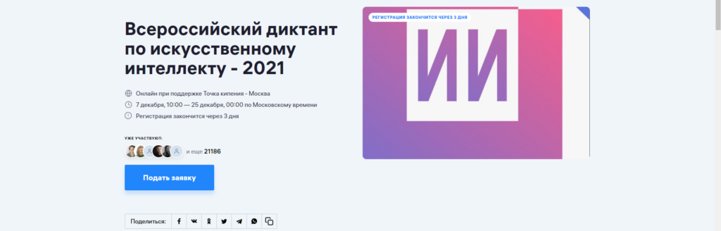 Участие в диктанте позволит за 10-20 минут участникам оценить свои знания технологий искусственного интеллекта, крайне востребованных сегодня в российской экономике.