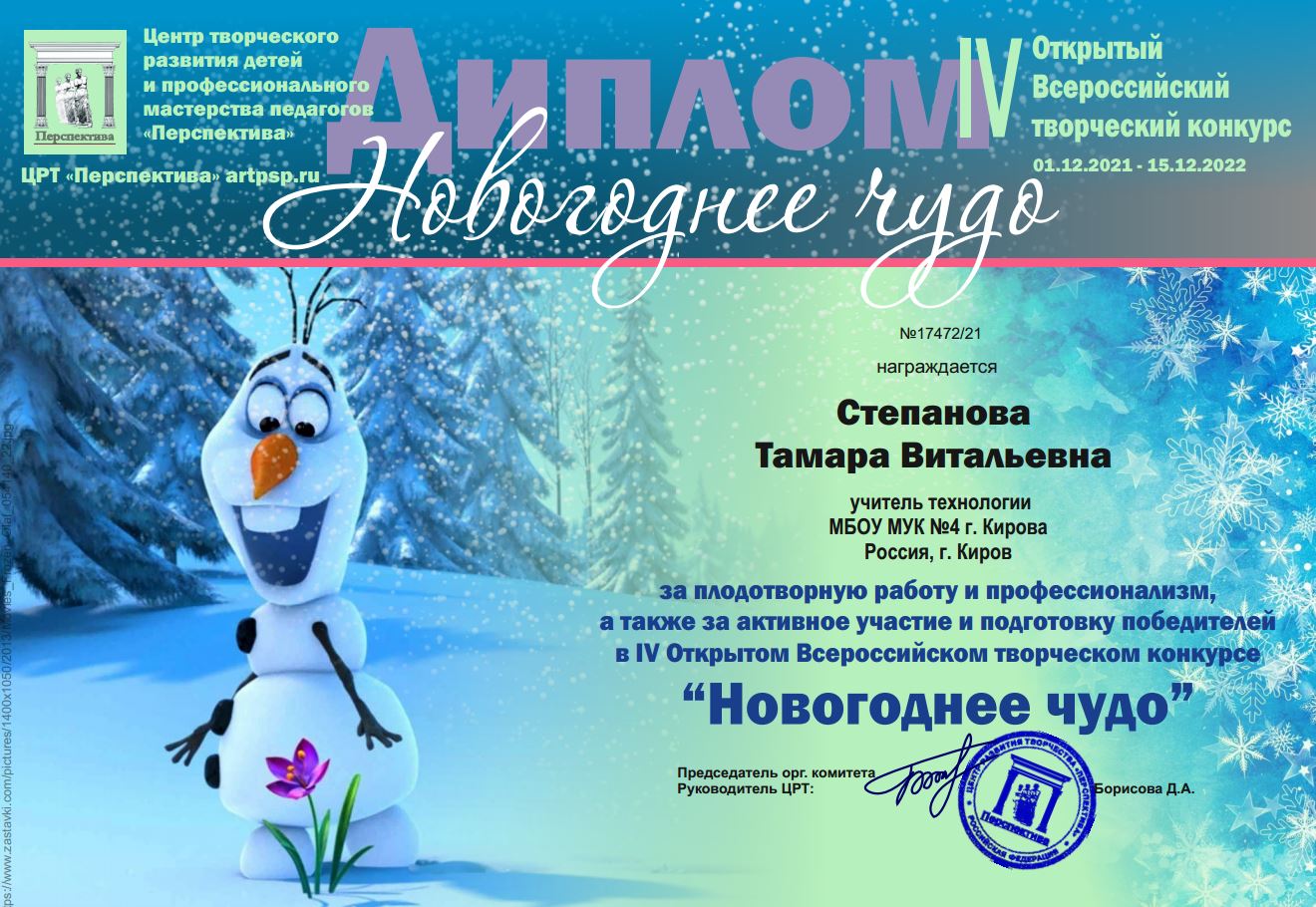 С 15 ноября ученики и педагоги МБОУ МУК № 4 приняли участие в IV Открытом Всероссийском творческом конкурсе «Новогоднее чудо.