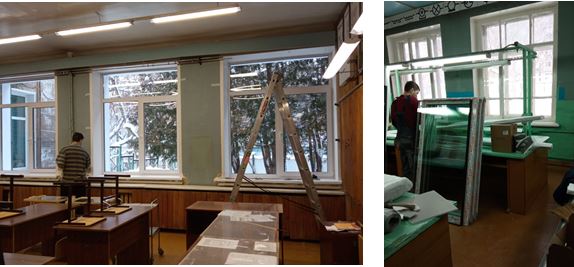 Деревянные рамы и подоконники заменили на современный пластиковый стеклопакет. Новые окна установили в 3 учебных кабинетах. Новые стеклопакеты сделали помещения теплее и изменили внешний вид.