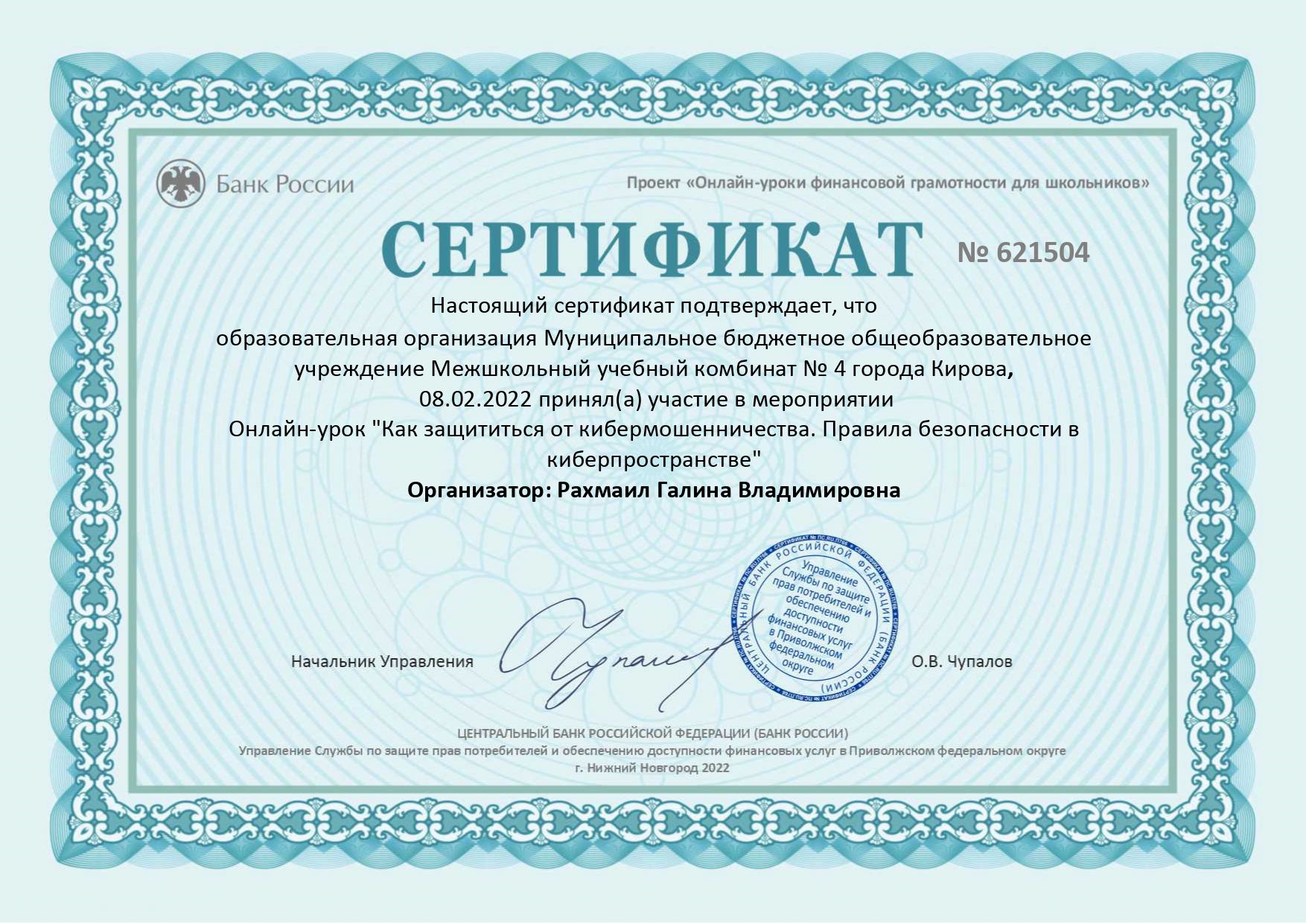 Огромное спасибо за организацию и проведение таких занятий педагогу МБОУ МУК № 4 Рахмаил Галине Владимировне.
