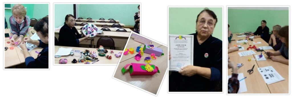 Погрузить в мир творчества получилось и взрослых. На мастер-классе Валентина Аркадьевна показала изготовление декоративных элементов массажного коврика в технике «йо-йо» и поделилась опытом использования данной техники в других изделиях.