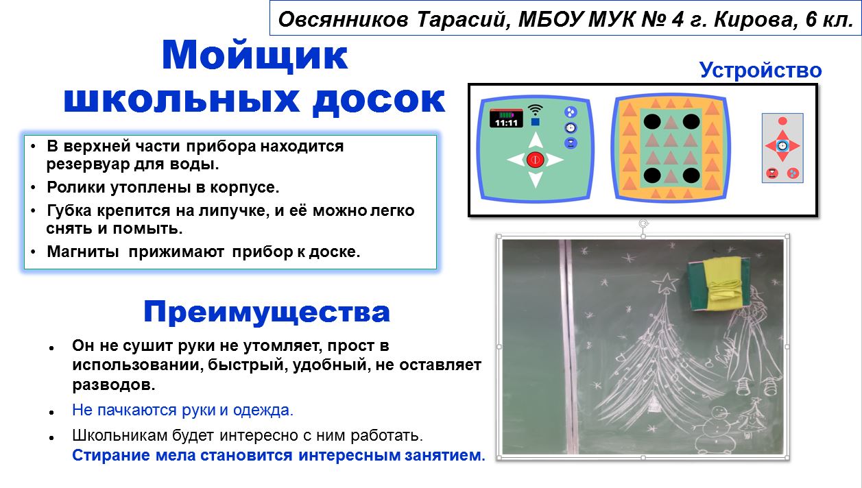 Результатом проекта стало устройство с дистанционным управлением «Мойщик школьных досок».