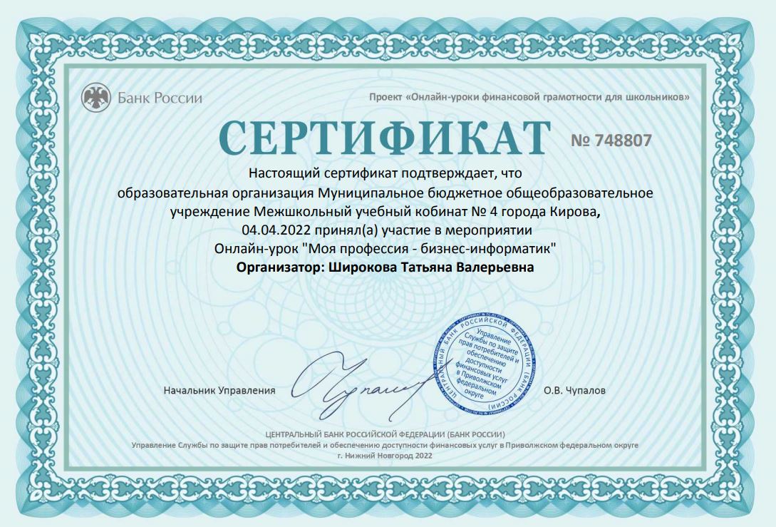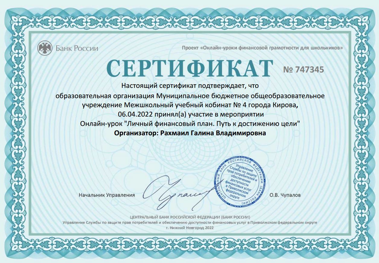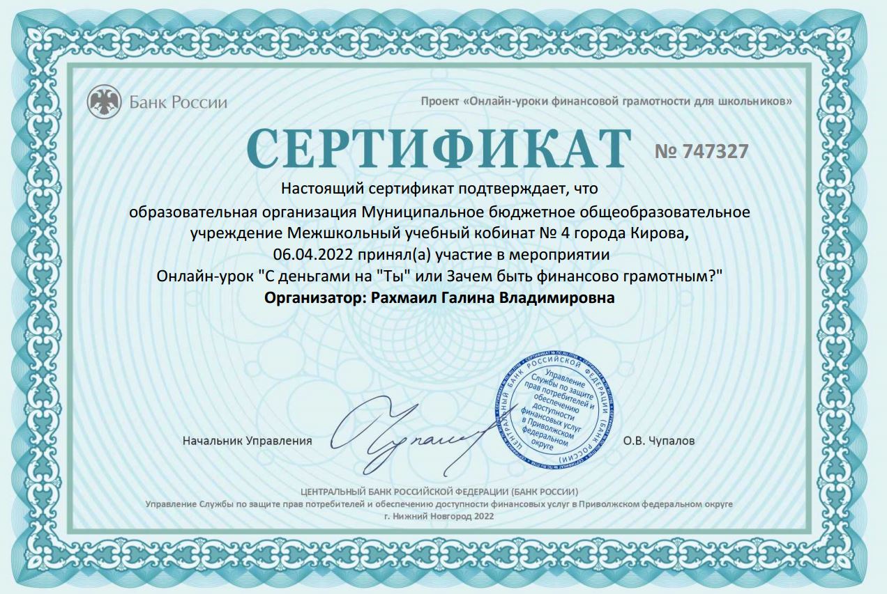 Продолжаем участие в весенней сессии проекта «ФИНАНСОВАЯ ГРАМОТНОСТЬ и ПРОФОРИЕНТАЦИЯ» Центрального Банка РФ.