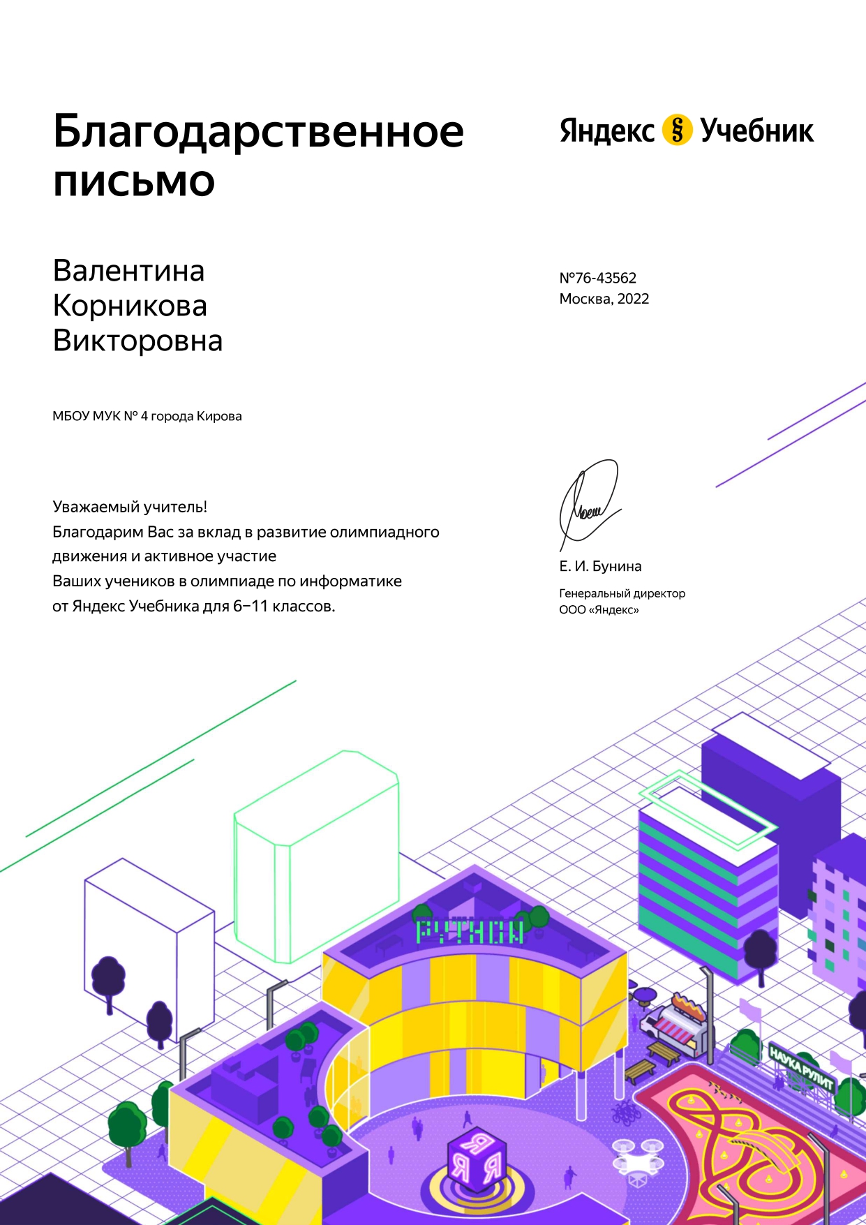 Отдельное спасибо нашему учителю информатики Корниковой Валентине Викторовне за наставничество, помощь и поиск новых подходов в преподавании информатики.