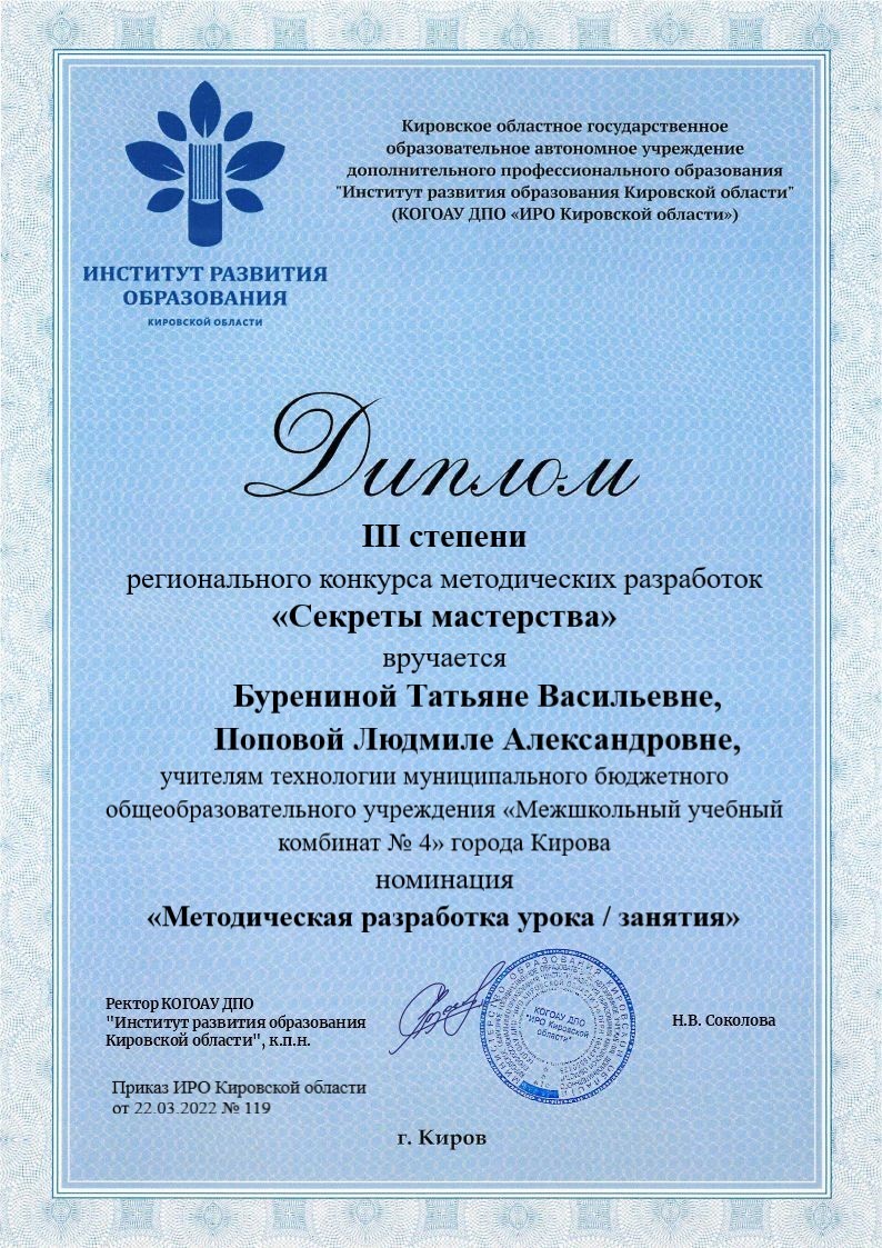Поздравляем с получением дипломов III степени в номинации «Методическая разработка урока/занятия»: